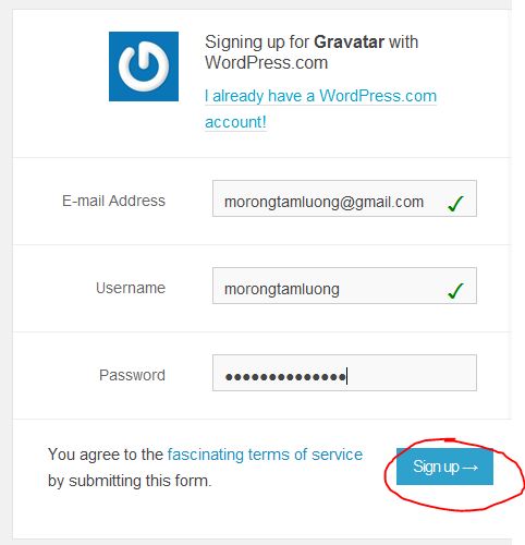 Trước tiên chúng ta phải sang website gravatar.com để tạo 1 account.