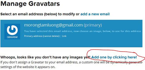 • 7- Bấm vào link Add one by clicking here! để upload hình đại diện.