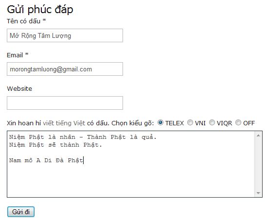 • 13- Khi gửi phúc đáp các bạn chỉ cần điền email đã dùng khi tạo account với Gravatar.