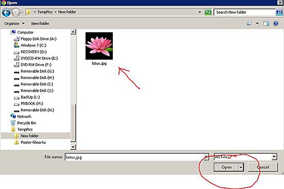 • 18- Chọn hình muốn upload từ máy rồi bấm nút Open, sau đó bấm Next.